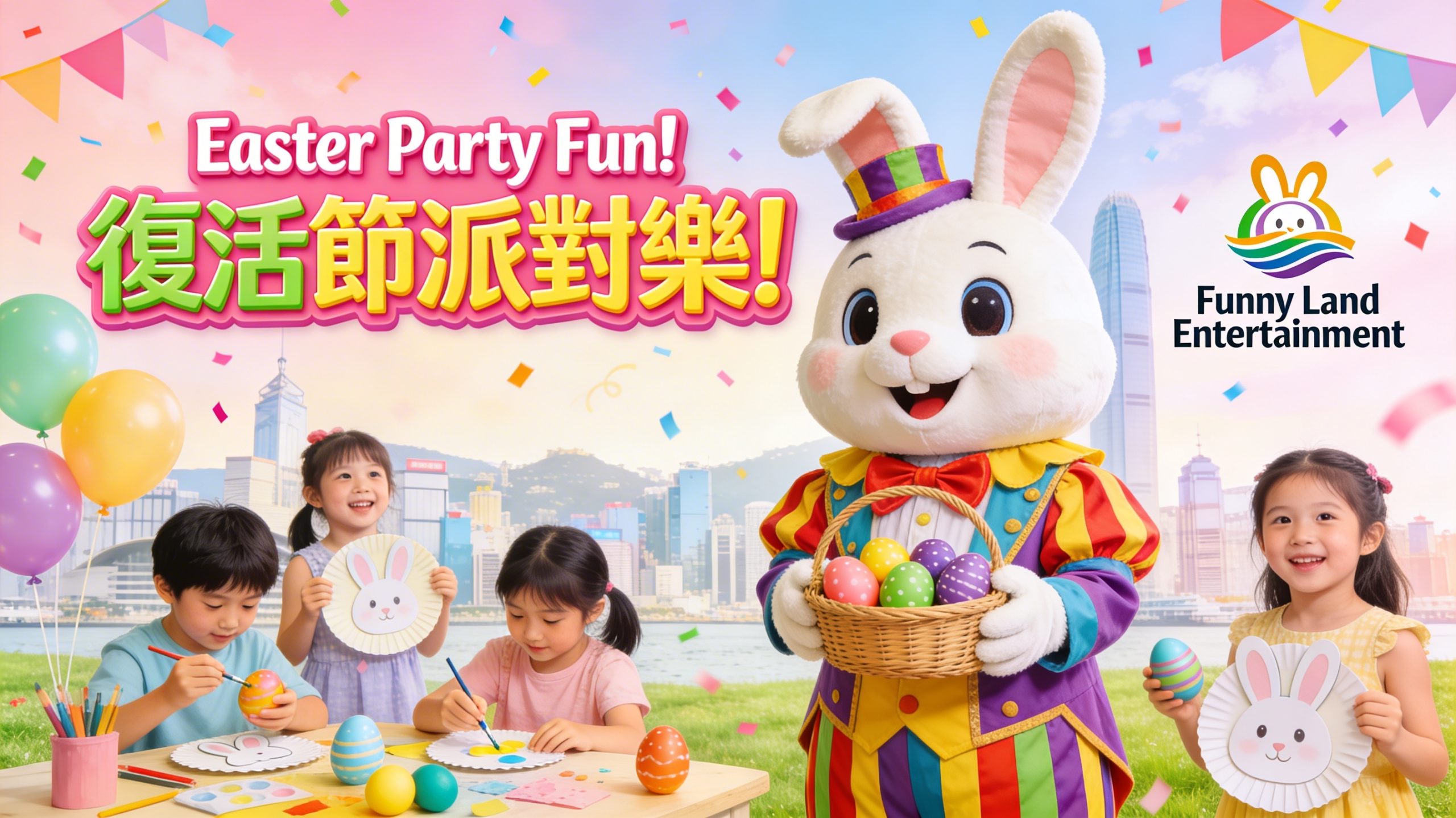 Funny Land Entertainment 復活節限定活動,兔仔大人偶領軍,結合超可愛手工藝,商場/生日會人氣保證!