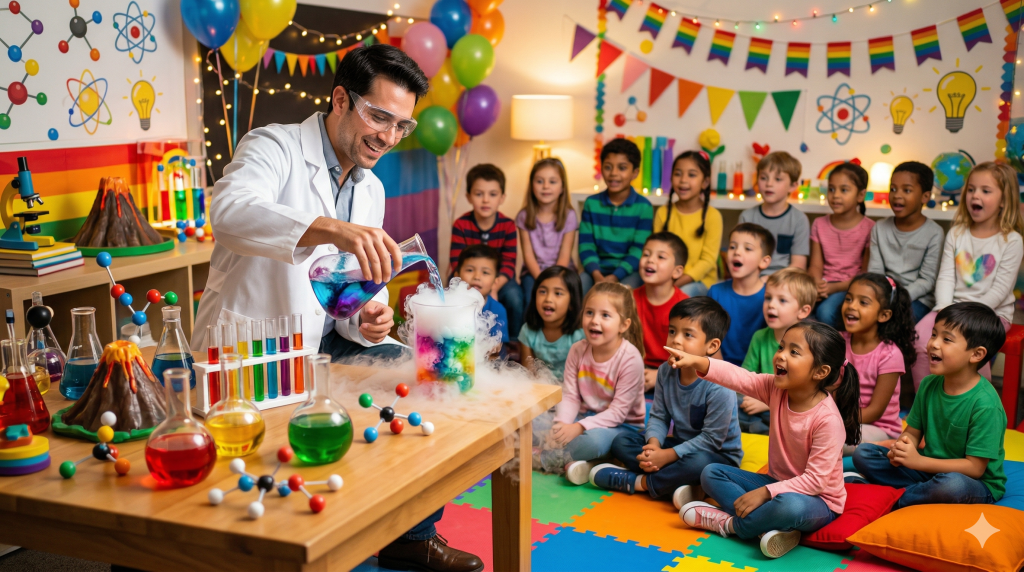 - 🤩 視覺震撼效果: 精心設計多款超吸睛的實驗項目,例如巨型空氣炮、神奇變色水或火山爆發等,兼顧視覺震撼與娛樂性,保證小朋友睇到嘩嘩聲!