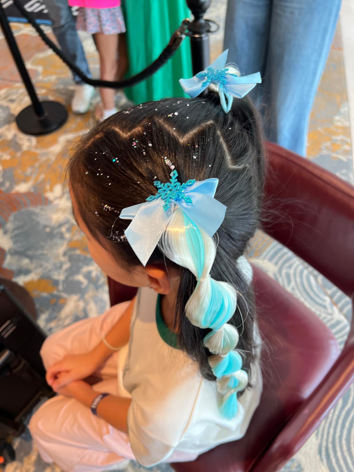 1. 冰雪艾莎辮:雙法式辮 + 藍色髮珠 + 雪花髮夾,完美配 Face Painting 艾莎妝