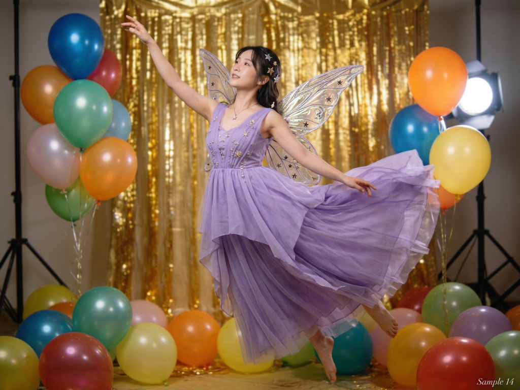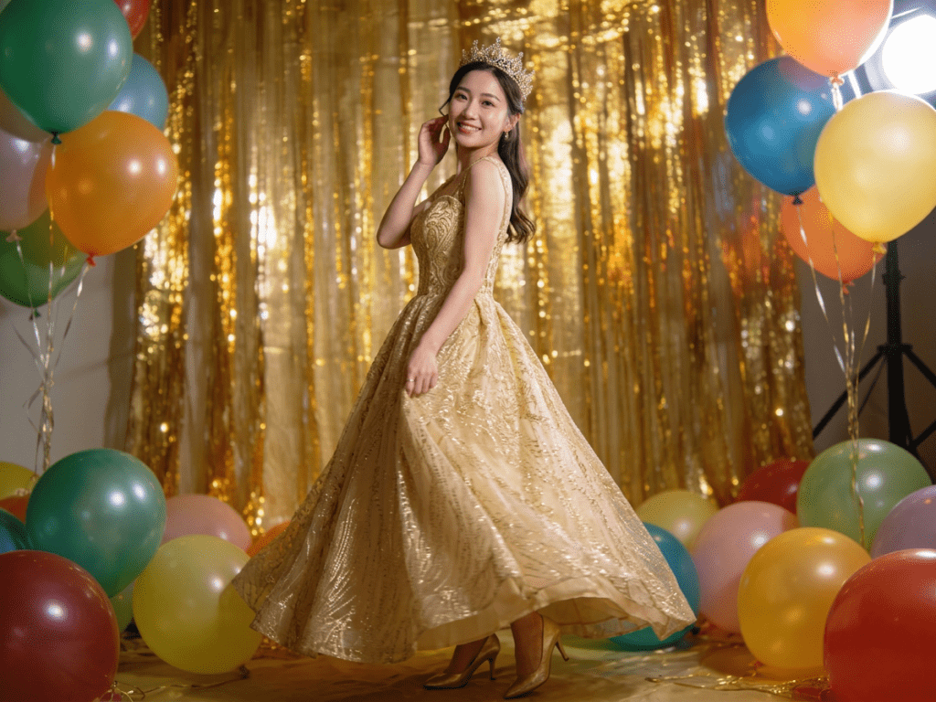 上門服務支援商場・會所・生日派對,提供金絲幕、皇帝椅、古風屏風,或配合氣球拱門打造完美主題攝影區。